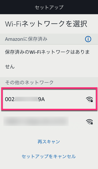 そしてAlexaアプリに戻り、家のWiFiネットワークを選びます。