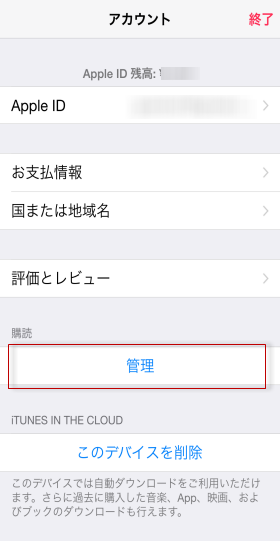 4. 購読の「管理」をタップします