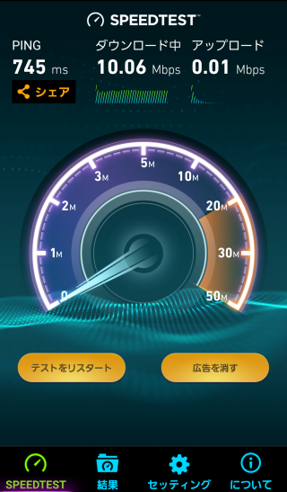 気になる通信速度ですが、10Mbpsと結構早かったです。YouTube動画も問題なく視聴することができました。ただ、私が計測した便は結構空いていたので利用者が多いともっと遅いと思います。